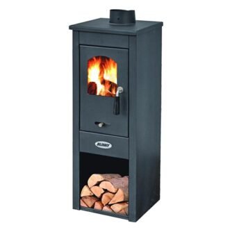 Struttura top e porta in acciaio, focolare refrattario 3 cm, tubo 12 cm, vetro ceramico, dimensioni 36x33x93h cm, 4 stelle, 37 kg, antracite.